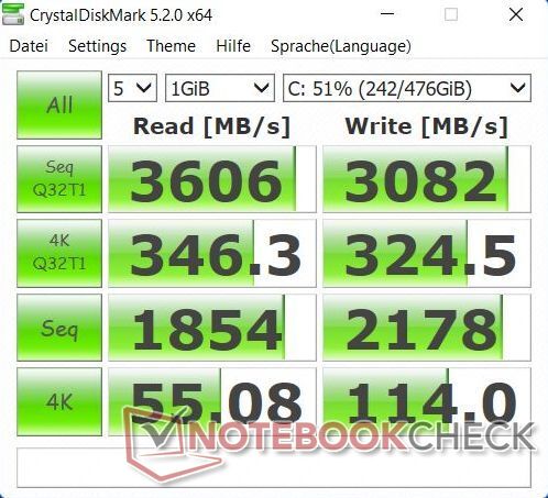 De microSD-kaartlezer levert goede snelheden die gemiddeld zijn voor de geteste apparaatklasse. Premium werkstations zoals de ThinkPad P1 G4 brengen echter meer dan de dubbele snelheden op tafel.