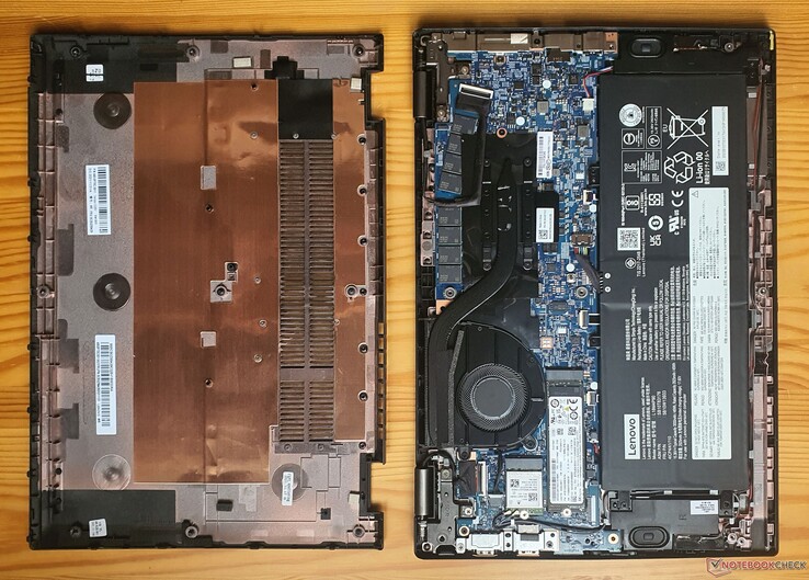 Hier verwisselbaar zijn: Wi-Fi, de M.2-2280 SSD en de batterij. Er zijn geen RAM slots of een slot voor WWAN. De ventilator is gemakkelijk toegankelijk voor reiniging.