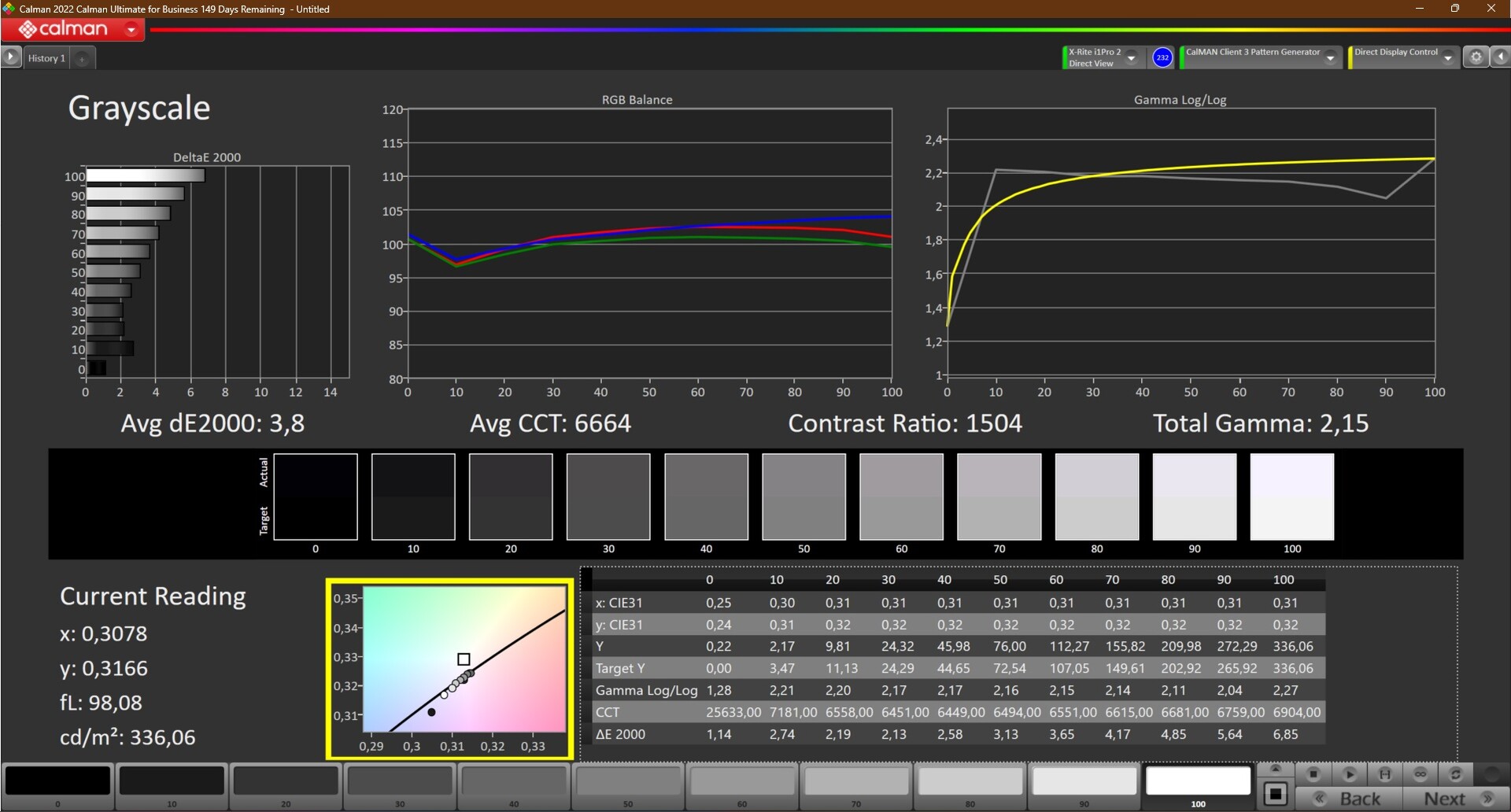 ΔE Greyscale Calman: 3.8 | ∀{0.09-98 Ø5}