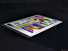 Subjectief gezien lijkt het matte tandem OLED-scherm op onze testunit korreliger dan een traditioneel glanzend alternatief, vooral bij het weergeven van een volledig wit beeld. Toch blinkt het nog steeds uit in HDR-weergave vanwege de zeer hoge helderheidsniveaus, vooral voor een OLED-paneel. Onze onafhankelijke metingen met een X-Rite colorimeter tonen een maximale helderheid van 566 nits in SDR-modus en 1430 nits in HDR-modus, wat dicht in de buurt komt van de geadverteerde waarden van respectievelijk 600 nits en 1500 nits. Als het aanraakscherm en de HDR-functies echter onbelangrijk zijn, is de 2400p-optie wellicht de moeite waard vanwege het grotere aantal pixels.
