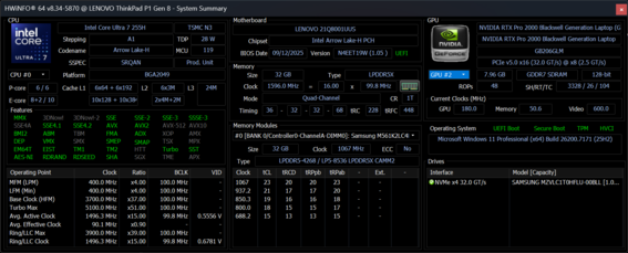 | Lenovo ThinkPad P1 Gen 8 Ultra 7 255H, RTX PRO 2000 Blackwell Generation Laptop, Samsung PM9E1 1 TB MZVLC1T0HFLU, Tandem OLED, 3200x2000, 16" | Lenovo ThinkPad P16s Gen 4 21RX000YGE Ryzen AI 9 HX PRO 370, Radeon 890M, Micron 3500 1TB MTFDKBA1T0TGD, IPS LED, 1920x1200, 16" | Lenovo ThinkPad P1 Gen 7 21KV001SGE Ultra 7 155H, GeForce RTX 4060 Laptop GPU, Kioxia XG8 KXG8AZNV1T02, IPS LED, 2560x1600, 16" | HP ZBook X G1i 16 Ultra 7 265H, RTX PRO 2000 Blackwell Generation Laptop, Samsung PM9A1 MZVL22T0HBLB, IPS, 2560x1600, 16" | Dell Pro Max 16 Plus Ultra 9 285HX, RTX PRO 5000 Blackwell Generation Laptop, SK hynix PCB01 HFS001TFM9X186N, OLED, 3840x2400, 16" | Asus ExpertBook B6 Flip B6602FC2 i9-12950HX, RTX A2000 Laptop GPU, Samsung PM9A1 MZVL21T0HCLR, IPS, 2560x1600, 16" | |