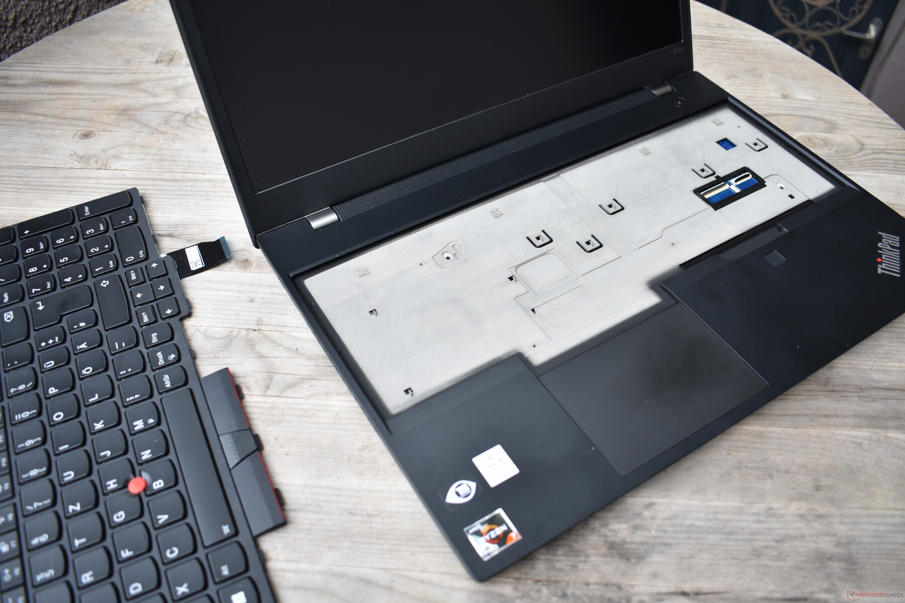 Toegang tot het binnenwerk van het apparaat is mogelijk via de verwijderbare bodemplaat, die kan worden afgenomen na het losdraaien van negen schroeven en een paar clips aan de achterkant. De ThinkPad P15v G3 is goed te upgraden, en alleen de processor en de WiFi-module zijn vastgesoldeerd. Er zijn twee M.2 2280 slots voor SSD's, twee SO-DIMM slots voor maximaal 64 GB RAM en ook de batterij en het koelsysteem kunnen onderhouden worden. WWAN wordt daarentegen niet ondersteund en er is geen bijbehorende sleuf voor beschikbaar.