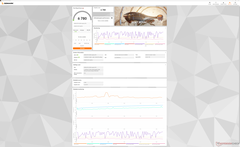 Bij het uitvoeren van Witcher 3 om hoge belastingen weer te geven, zouden de GPU-kloksnelheid, geheugenklok en temperatuur zich stabiliseren op respectievelijk 1477 MHz, 2000 MHz en 78 C, vergeleken met 1417 MHz, 1750 MHz en 82 C op de Precision 7670 onder vergelijkbare omstandigheden. Het stroomverbruik op onze Lenovo zou ook hoger zijn met 129 W, vergeleken met slechts 100 W op de Dell, wat de bovengenoemde prestatievoordelen van de GPU zou verklaren.