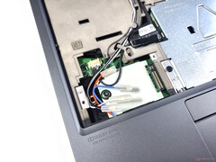 Lenovo heeft het erg gemakkelijk gemaakt om twee van de vier RAM-slots te bereiken, aangezien alleen het kleine klepje aan de onderkant van het apparaat verwijderd hoeft te worden. Hier is ook een vrij M.2 2280 slot te vinden. Het is iets moeilijker om bij de andere RAM-slots, het tweede M.2-slot, de gesoldeerde WiFi-module en het WWAN-slot te komen: daarvoor moet het toetsenbord wijken. De laatste horde dient zich aan in de vorm van twee metalen kappen. In totaal zitten er aan de onderkant van de laptop nog eens tien extra kruiskopschroeven die met plastic haakjes zijn vastgezet. Bij het verwijderen van dit deel krijg je een duidelijk zicht op het grote koelsysteem met in totaal twee ventilatoren en de interne batterij.