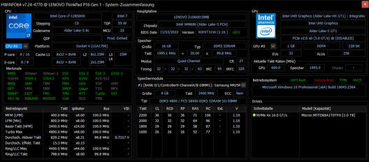 | Lenovo ThinkPad P16 G1 21D6001DMB i7-12850HX, RTX A2000 Laptop GPU, Micron 3400 1TB MTFDKBA1T0TFH, IPS LED, 2560x1600, 16" | Lenovo ThinkPad P15 G2-20YQ001JGE i7-11800H, RTX A3000 Laptop GPU, Kioxia XG7 KXG7AZNV512G, IPS, 1920x1080, 15.6" | Lenovo ThinkPad P17 G2-20YU0025G i7-11800H, RTX A2000 Laptop GPU, Kioxia XG7 KXG7AZNV512G, IPS LED, 1920x1080, 17.3" | HP ZBook Fury 17 G8-4A6A9EA i9-11950H, RTX A3000 Laptop GPU, Toshiba XG6 KXG60ZNV1T02, IPS, 3840x2160, 17.3" | Dell Precision 7670 i7-12850HX, RTX A2000 Laptop GPU, SK Hynix HFS001TEJ9X115N, OLED, 3840x2400, 16" | Asus ExpertBook B6 Flip B6602FC2 i9-12950HX, RTX A2000 Laptop GPU, Samsung PM9A1 MZVL21T0HCLR, IPS, 2560x1600, 16" | Gemiddeld NVIDIA RTX A2000 Laptop GPU | Gemiddelde van klas Workstation | |
