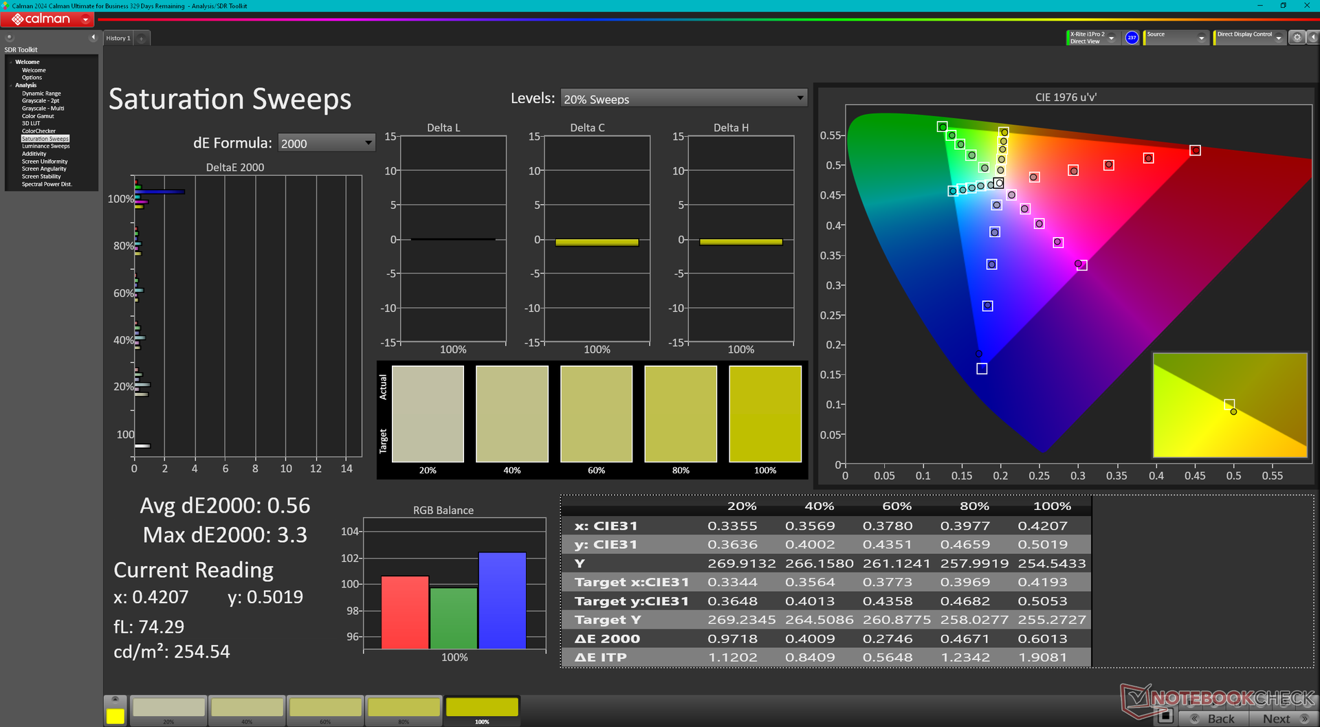 ΔE ColorChecker Calman: 1.82 | ∀{0.5-29.43 Ø4.78}