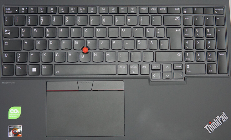 Oppervlak met structuur, donkergrijze behuizing: De ThinkPad-visuals zijn al van verre te herkennen. En zoals altijd is het puntje boven de "I" verlicht. Dit ziet er niet strak uit en is zeker niet modern. In plaats daarvan voelt het robuust en duurzaam aan. Strakke scharnieren die het 16-inch scherm in elke hoek houden en een deksel dat bijna naadloos sluit, versterken deze hoogwaardige en stabiele indruk, zelfs zonder metalen onderdelen aan de buitenkant van de behuizing.