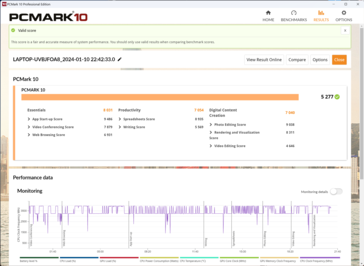 De hoge efficiëntie van de AMD Ryzen 7 Pro 7840U wordt enigszins getemperd door het OLED-beeldscherm van de laptop. De goede looptijden zijn grotendeels te danken aan de grote accucapaciteit van 84 Wh en niet aan het feit dat de accu zuinig is bij lage belasting.