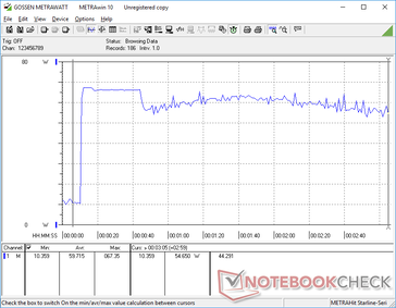We zijn in staat om een tijdelijke maximale stroomopname van 68 W uit de kleine (~8,8 x 5,2 x 2,3 cm) 65 W AC-adapter te halen tijdens het uitvoeren van Prime95 stress, zoals de onderstaande screenshots laten zien.