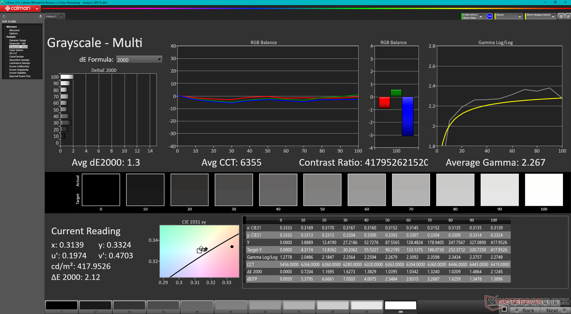 ΔE Greyscale Calman: 1.3 | ∀{0.09-98 Ø5}