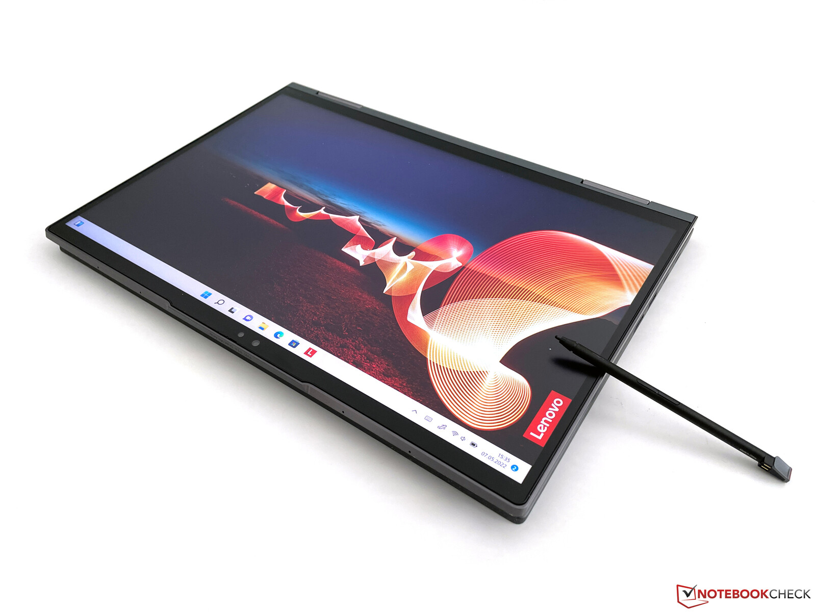 Natuurlijk kan het capacitieve aanraakscherm ook worden gebruikt voor invoer en we hebben hier geen problemen ondervonden. We vonden het matte oppervlak zelfs iets beter (vooral bij het typen) dan de OLED van bijvoorbeeld de Yoga 9i 14, omdat het matte oppervlak minder weerstand creëert. De compacte stylus is altijd binnen handbereik in de behuizing, maar hij is ook erg klein en dun. Het is zeker voldoende voor incidentele notities, maar als je veel wilt schrijven, ben je veel beter af met een grotere stylus zoals Lenovo's Precision Pen 2.