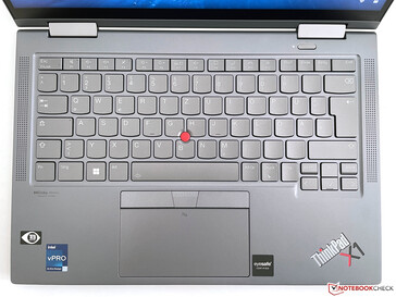 Hoewel Lenovo al toetsenborden gebruikt met een verkorte toetsweg van 1,35 mm in sommige modellen, zoals deThinkPad X1 Titanium Yogahebben de toetsen van de X1 Yoga G7 de gebruikelijke travel van 1,5mm. De hoogte van de toetsen was echter al verlaagd in de voorgangerwat zeker invloed had op het subjectieve typegevoel. Het toetsenbord is over het algemeen nog steeds erg goed en biedt ook voordelen ten opzichte van Lenovo's consumenten modellen, zoals de onlangs gereviewde Yoga 9i 14. Maar als je vooral van oudere ThinkPad-modellen komt, merk je meteen dat het toetsenbord in kwaliteit achteruit is gegaan en dat het geen echt voordeel meer biedt ten opzichte van andere zakelijke laptops van HP of Dell.