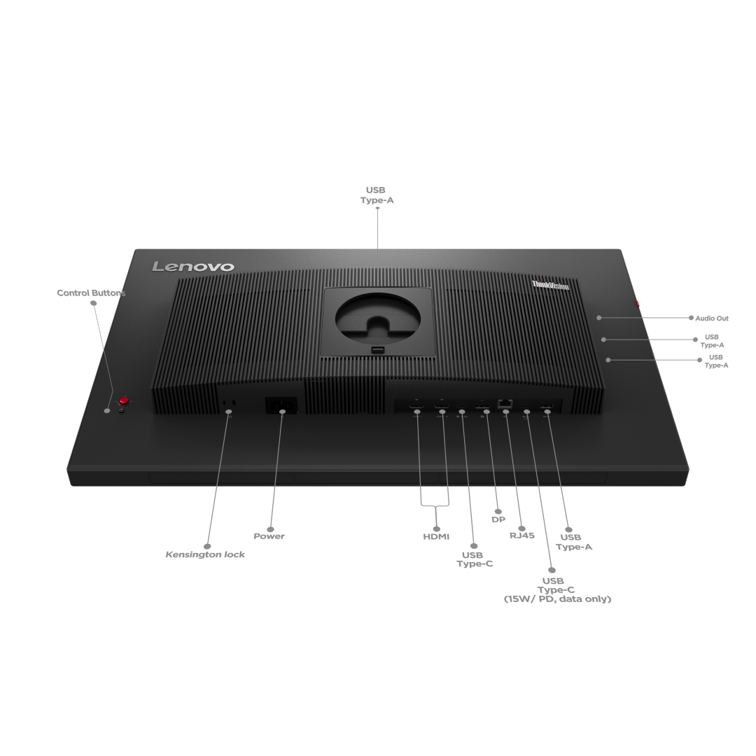 De ThinkVision 27 3D biedt fatsoenlijke connectiviteit met 2x HDMI 2.1-out, 1x DisplayPort 1.4-out, USB Type-C (HBR 3), RJ45 en audio-out. De USB-hub is geschikt voor 1x USB 3.2 Gen1 Type-C upstream en 5x USB 3.2 Gen1 downstream, samen met een vermogen van maximaal 100 W. De ThinkVision 27 3D ondersteunt ook de Lenovo MC60 monitor webcam met 1080p IR- en RGB-sensoren.