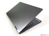 De donkergrijze Yoga 7 14 is vergelijkbaar met de duurdere Yoga 9i qua design en maakt ook gebruik van afgeronde hoeken. Het klepje van het scherm is ook iets kleiner dan dat van het basisstation, wat vooral opvalt als het scherm naar beneden is gedraaid en de convertible als tablet wordt gebruikt. De Yoga 9iheeft echter een iets meer premium uitstraling dankzij het gebruik van gepolijst metaal langs de basiseenheid. Maar de Yoga 7 hoeft helemaal niet verlegen te zijn met zijn aluminium unibody behuizing: ons recensie-exemplaar laat een zeer hoogwaardige indruk achter in termen van stabiliteit en haptiek. Noch de basiseenheid, noch het deksel van het scherm kan worden ingedeukt en er zijn geen krakende geluiden.