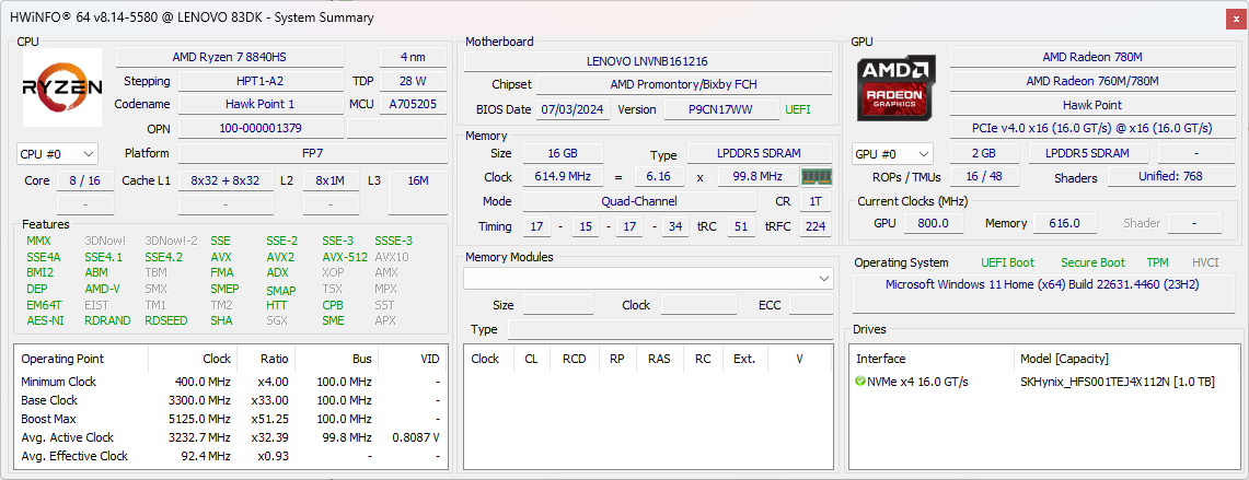 Lenovo Yoga 7 2-in-1 14AHP9 AMD Ryzen 7 8840HS, AMD Radeon 780M |