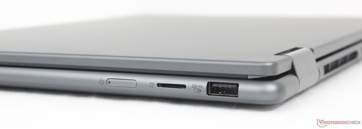 Alle poorten van de 2022 Yoga 7 14 2-in-1 zijn terug, zij het anders gerangschikt. Hoewel we de dubbele Thunderbolt 4-poorten op prijs stellen, zou het fijn zijn geweest om ze te scheiden tussen de twee zijkanten van de laptop, zoals op de Razer Blade 14 voor meer vrijheid bij het opladen en aansluiten van externe beeldschermen. Concurrerende modellen zoals de Inspiron 14 7445 2-in-1 of Envy x360 2-in-1 14 hebben ook meer USB-A poorten dan onze Lenovo.