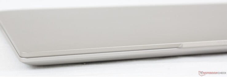 De poorten zijn vergelijkbaar met de oudere Yoga C940 14 inclusief de positionering van alle poorten langs de linkerrand. Er zijn geen HDMI-poorten in tegenstelling tot de Yoga Slim 7, wat betekent dat gebruikers moeten vertrouwen op Thunderbolt-adapters om de klus te klaren.