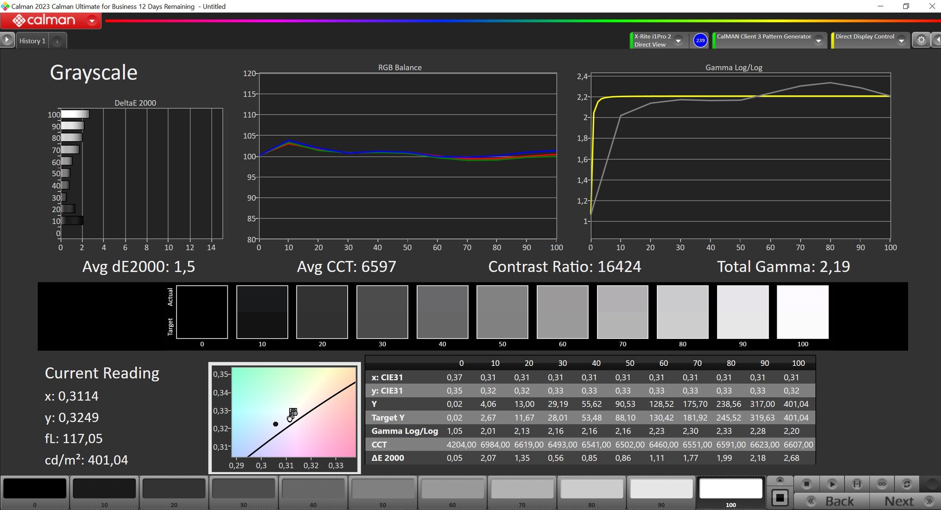 ΔE Greyscale Calman: 1.3 | ∀{0.09-98 Ø5}