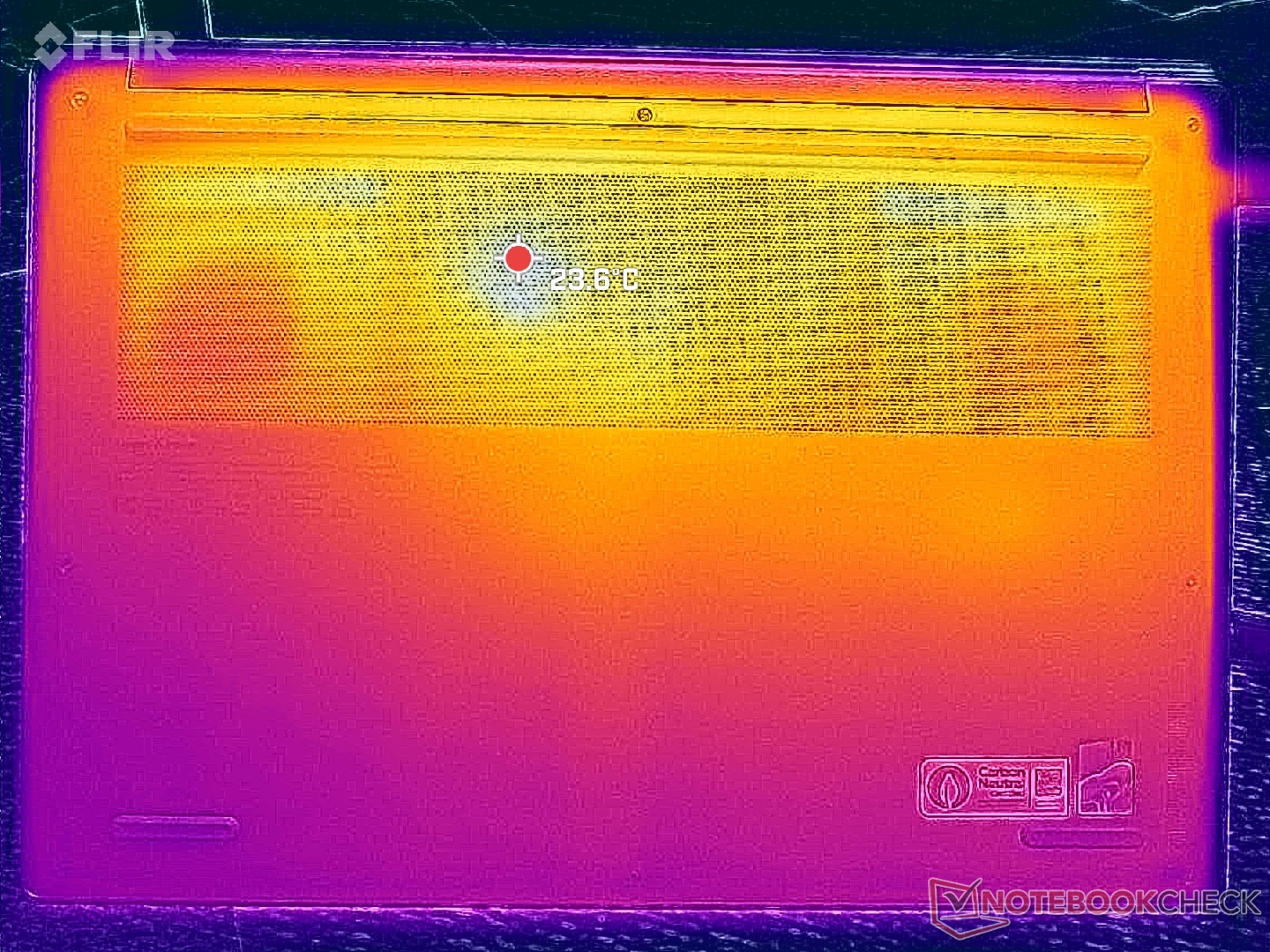(+) Bij onbelast gebruik bedraagt de gemiddelde temperatuur voor de bovenzijde 25.6 °C / 78 F, vergeleken met het apparaatgemiddelde van 31.3 °C / 88 F.