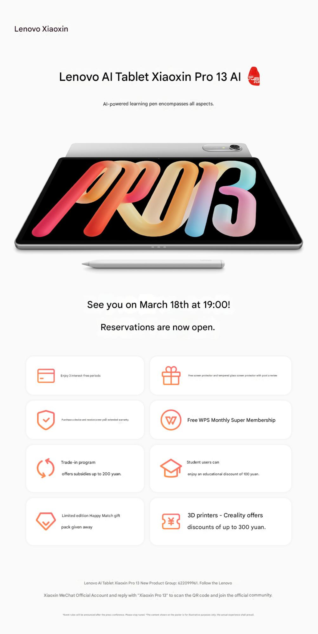 Nu is duidelijk geworden dat beide tablets tegelijkertijd gelanceerd zullen worden. Zoals de afbeelding hieronder laat zien, onthult Lenovo de serie op 18 maart om 19:00 lokale tijd (11:00 UTC). Lenovo leunt ongetwijfeld op de iPad Pro 13 (momenteel $1,199 op Amazon).