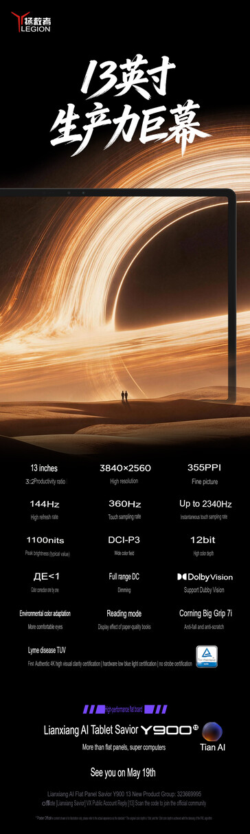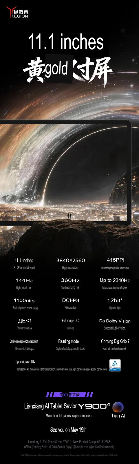 Lenovo heeft zojuist officieel de specificaties bevestigd van zijn vlaggenschip, de Legion Y900 tablet, in aanloop naar de 19 mei lanceringsevenement, en onthult daarmee wat een van de krachtigste Android tablets op de markt zal worden.