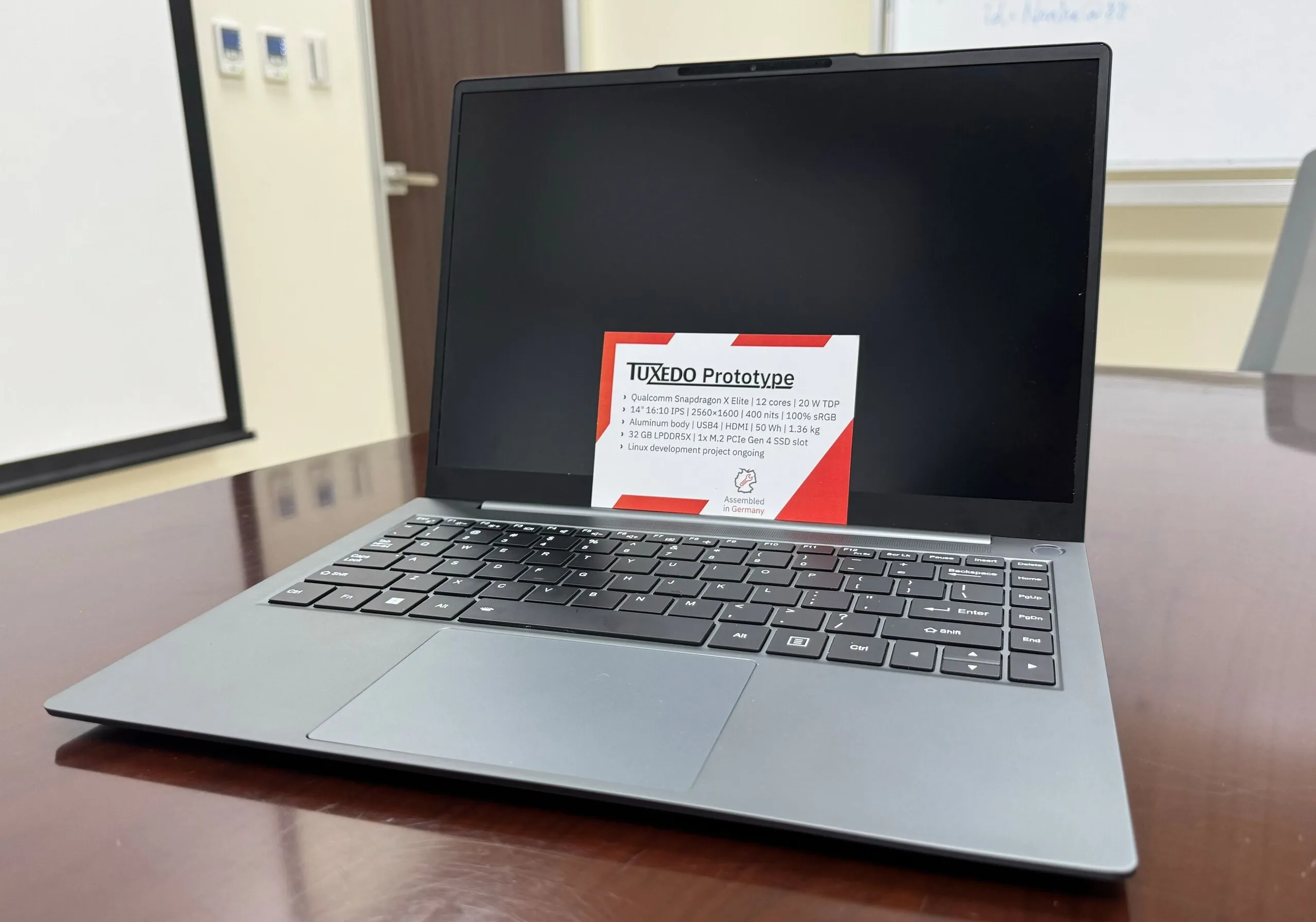 XMG / Schenker-dochteronderneming Tuxedo is van plan om 's werelds eerste Linux-gebaseerde laptop op de markt te brengen die wordt aangedreven door de efficiënte Snapdragon X Elite processor eind 2024 op de markt te brengen. De Duitse laptop OEM toonde onlangs een prototype op Computex '24, maar Linux draaide er niet echt op, omdat volledige ondersteuning voor de nieuwe Snapdragon-processors naar verwachting pas beschikbaar zal zijn op Linux 6.11 die in 2H '24 wordt gelanceerd.