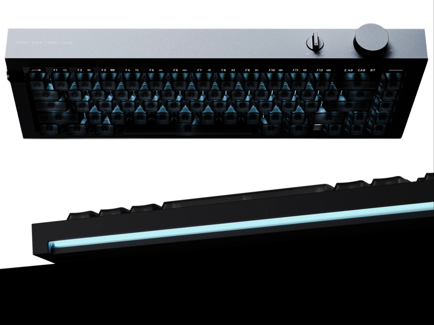 Wat het ontwerp betreft, is het chassis CNC-gefreesd uit één blok aluminium. Het is een toetsenbord van 65%, maar integreert op een slimme manier de functierij door middel van een speciale toggle en LED-indicatoren. Er is een knop voor audioregeling en een drieweg toggle-schakelaar voor voeding, bedrade en draadloze modi. Hoewel er geen voetjes aan de onderkant zitten, heeft Lofree een 12-graden kantelfunctie toegevoegd voor een meer ergonomische typpositie. De Hyzen heeft ook een LED-lichtbalk aan de onderkant, naar beneden gericht.