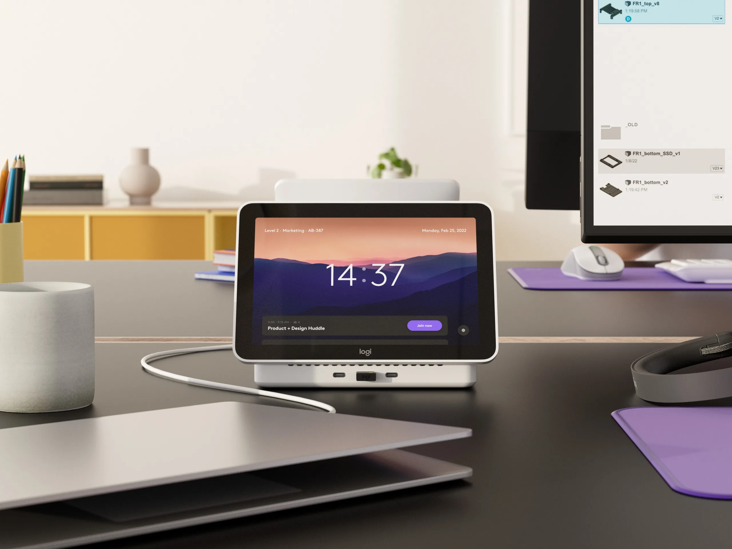 De Logi Dock Flex heeft twee 7,5W USB-C en één 7,5W USB-A poort aan de voorkant van het apparaat, met nog eens twee USB-A en een USB-C poort aan de achterkant. Ook aan de achterkant van het apparaat zitten een RJ45-ethernetpoort, HDMI 2.0-poort en DisplayPort 1.4, waardoor je verbinding kunt maken met twee monitoren met een resolutie tot 4K@60Hz. Het Logitech-dockingstation heeft een 8-in (~203 mm) display met een resolutie van 120 x 800, waarop te zien is of het bureau momenteel beschikbaar is. U kunt het dockingstation personaliseren met een achtergrondfoto en een bericht "weg van mijn bureau", plus u kunt uw agenda integreren via Logi Tune voor click-to-join-uitnodigingen voor vergaderingen.