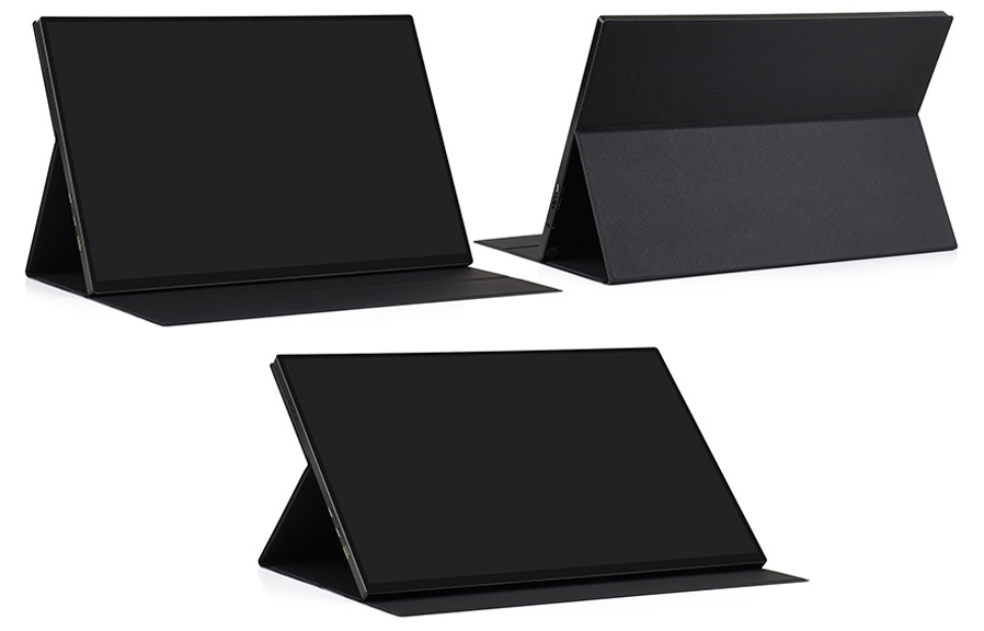 Het scherm is ongeveer 10 mm dik en weegt ongeveer 1,35 kg (2,97 lbs), wat een beetje zwaar is voor een draagbaar beeldscherm, maar het wordt geleverd met een afneembare behuizing die ook werkt als een standaard met twee verstelbare kijkhoeken. De monitor heeft geen ingebouwde batterij, dus hij wordt rechtstreeks gevoed door het aangesloten hostapparaat of heeft een speciale externe voeding nodig. Als leuk extraatje is er een 75 mm VESA-bevestiging.
