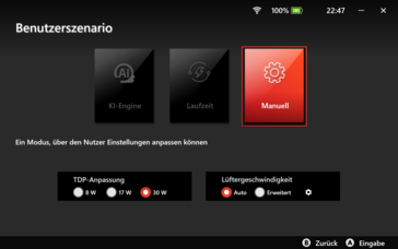 MSI heeft de batterijcapaciteit van de handheld verhoogd tot 80 Wh en samen met het lage verbruik resulteert dit in zeer goede runtimes. Bij het gamen hangt het sterk af van het geselecteerde energieprofiel: In de snelste modus duurde Cyberpunk tijdens onze test 01:45 uur (~25fps), terwijl de AI-engine modus iets minder dan 3,5 uur (~19fps) opleverde.