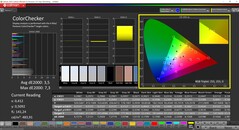 In onze analyse met de professionele CalMAN software hebben we een gemiddelde helderheid van 524 cd/m² en een goede contrastverhouding van meer dan 1.500:1 gemeten. Deze helderheid gaat echter ten koste van een te koele kleurtemperatuur en we merkten een blauwzweem op in het beeld - over het algemeen is de fabriekskalibratie niet bijzonder goed. We konden dit aanzienlijk verbeteren met onze eigen kalibratie (ons profiel kunt u hiernaast gratis downloaden), maar dit verlaagt ook de maximale helderheid met ongeveer 50 cd/m². Het scherm dekt volledig de sRGB-kleurruimte.