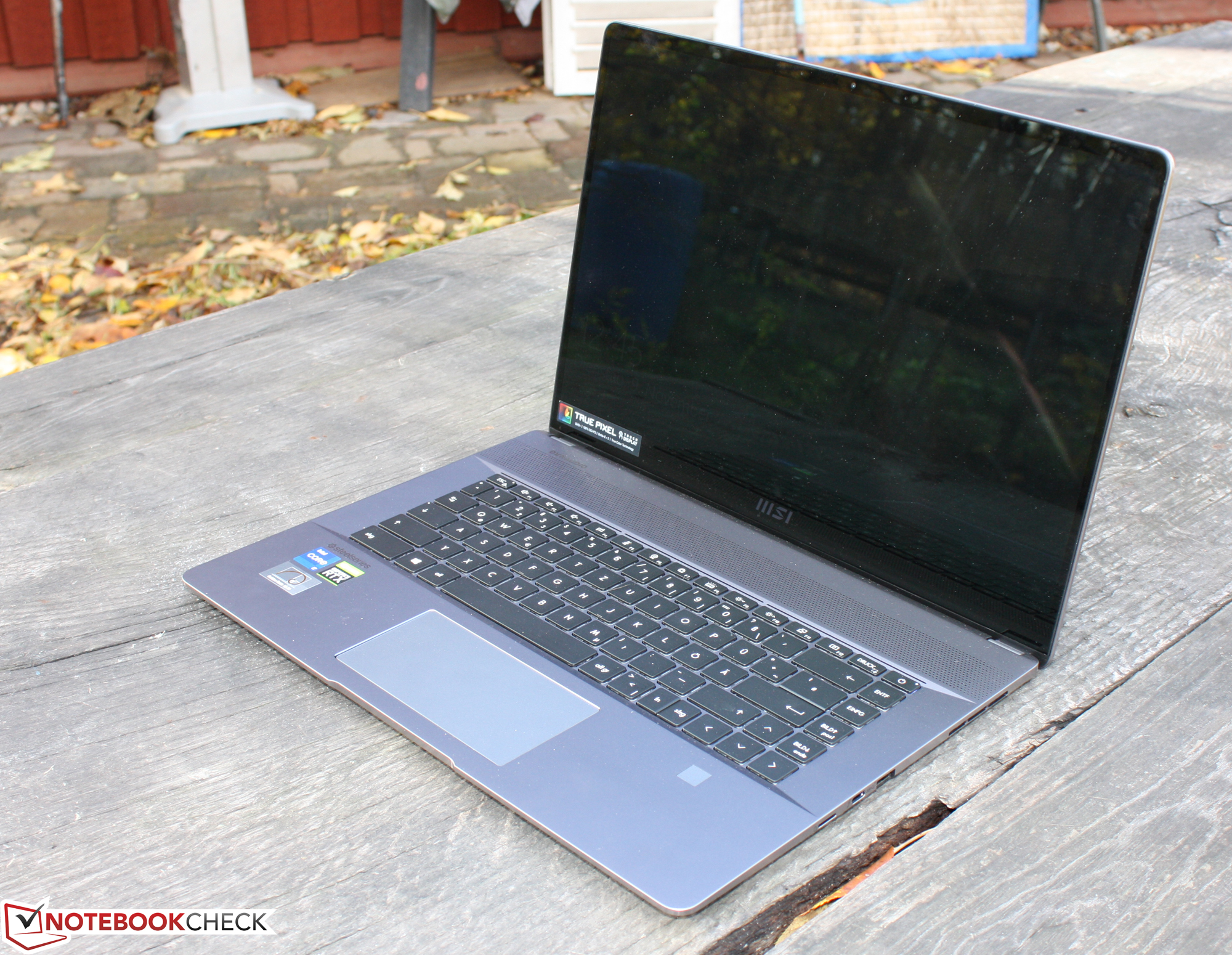Thunderbolt 4 is aan boord, net als USB 4.0. Schermen lopen via DisplayPort via Type-C, er zijn geen lompe HDMI of Ethernet poorten. Het 2.560 x 1.600 pixel beeldscherm (QHD+) pakt 96% van de AdobeRGB kleurruimte, en P3 is volledig zichtbaar. Het aanraakpaneel maakt het gebruik flexibeler, maar voorkomt onvermijdelijk een mat oppervlak. De goede helderheid en het hoge contrast maken de tekortkoming echter goed; MSI biedt ook een niet-verblindende versie die een identiek True Pixel paneel zou moeten bevatten.