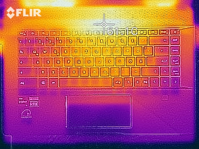 Thermisch gezien is de Z16 passabel gepositioneerd. In de gebalanceerde modus blijven de ventilatoren meestal uit in idle, maar ze gaan af en toe aan tijdens prestaties. De afvalwarmte is passend voor de prestaties en wordt voornamelijk opgemerkt in het achterste gedeelte van de laptop. Onder belasting produceren de drie ventilatoren een behoorlijke hoeveelheid geluid, maar het is tenminste gelijkmatig en nooit hectisch.