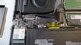 Een tweede M.2 slot voor opslaguitbreiding is beschikbaar en reeds voorzien van een warmte-afvoerende cover. De batterij en RAM componenten kunnen ook zonder problemen worden vervangen. Het schoonmaken van de ventilatoren is net zo eenvoudig.