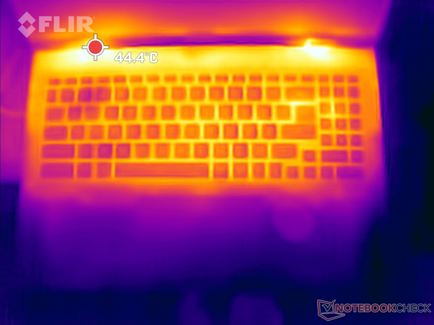 De WASD-, touchpad- en palmsteungebieden bleven relatief koel tijdens de stresstests.
