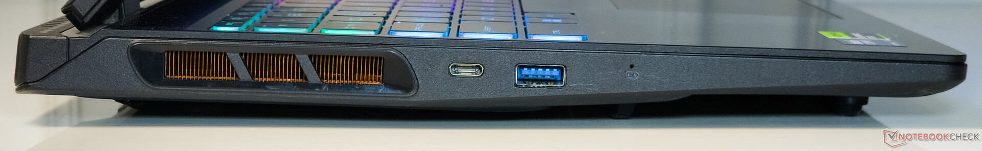 De poortkeuze is vergelijkbaar met die van de Crosshair 18 HX AI en omvat een Thunderbolt 4-poort, 3x USB 3.2 Gen1 Type-A poorten, een HDMI 2.1-uitgang en Gigabit Ethernet. We ondervonden geen hinder bij het aansluiten van randapparatuur naast elkaar.