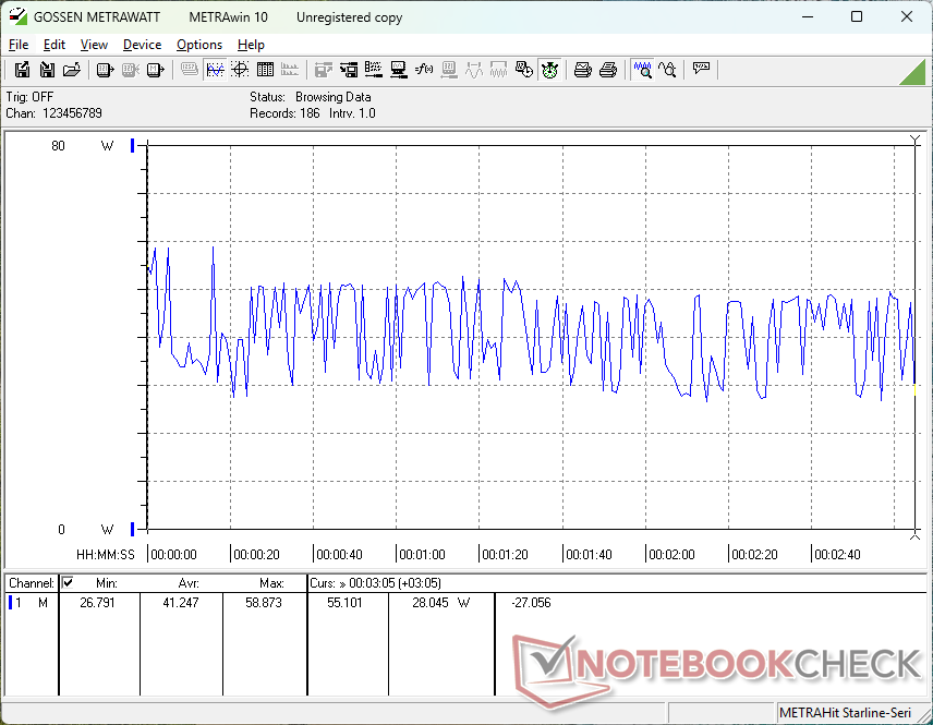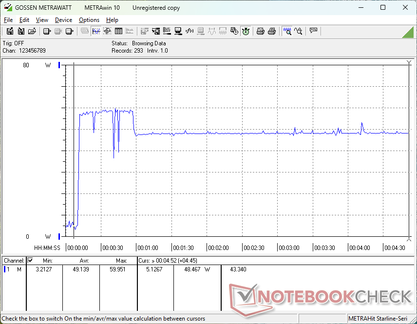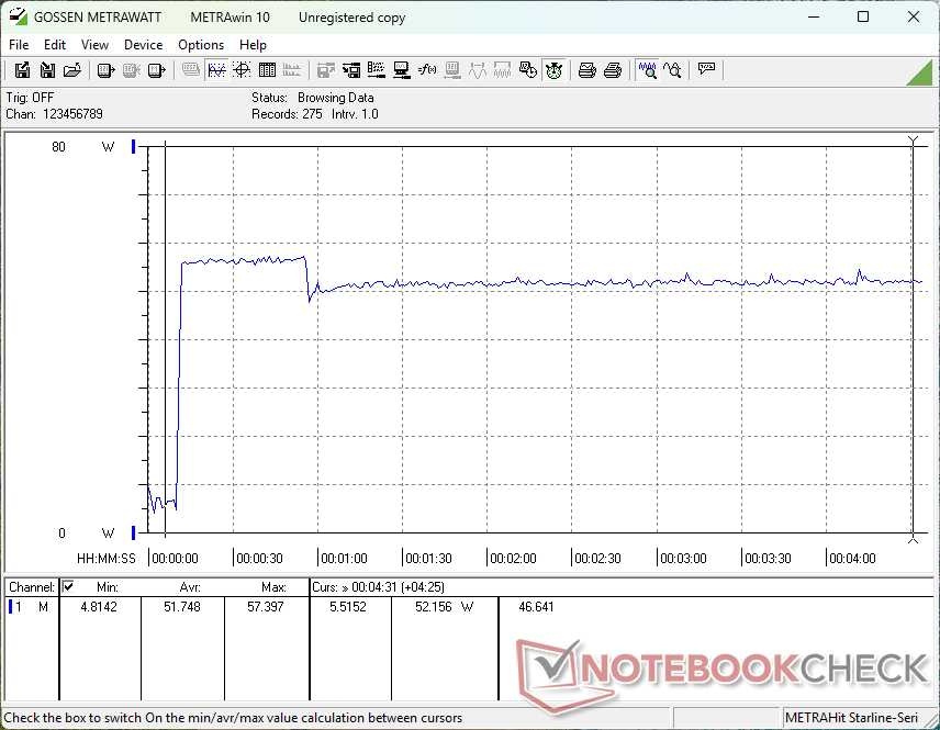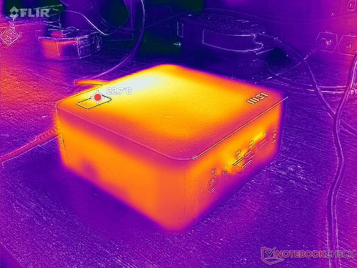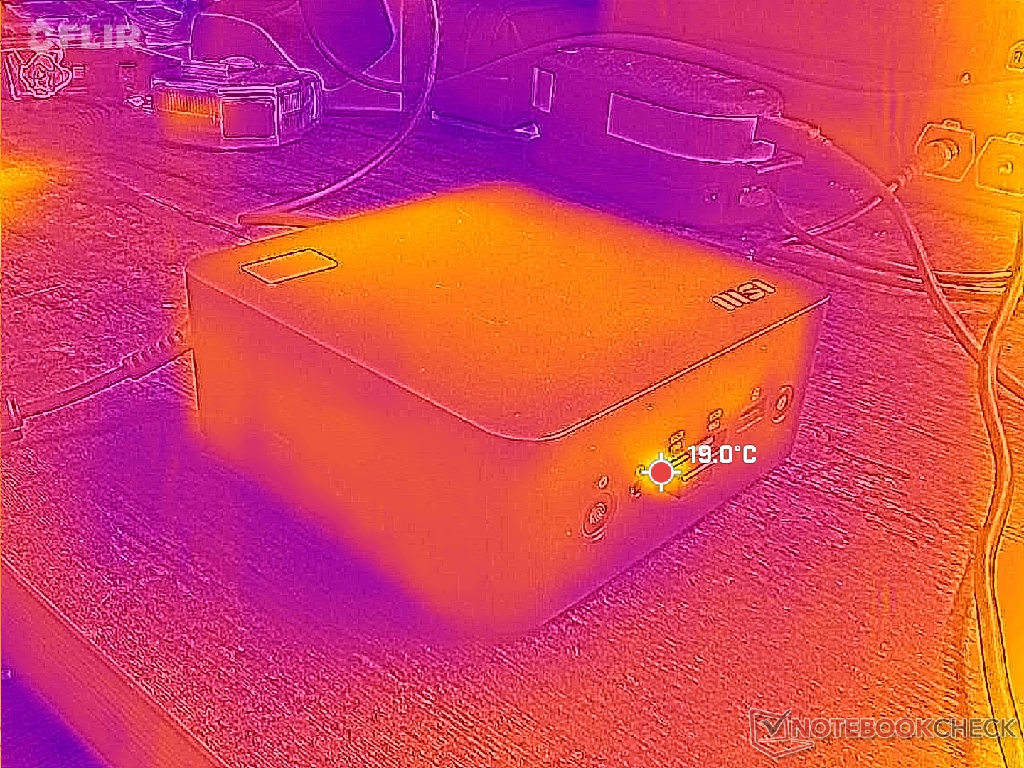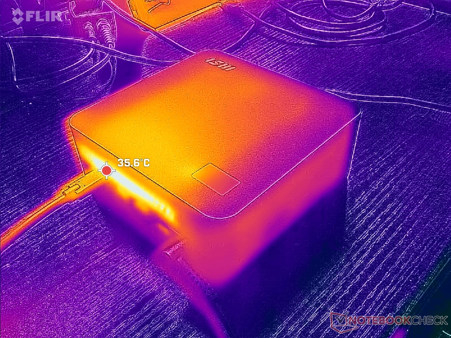Het totale verbruik is merkbaar lager dan een AMD H-serie mini PC zoals de GMK NucBox K12 ook al is onze geïntegreerde Arc 140V ongeveer vergelijkbaar met de concurrerende geïntegreerde Radeon 780M tijdens het gamen. Prestaties-per-watt zijn over het algemeen in het voordeel van de MSI Cubi, zij het ten koste van de ruwe processorprestaties in vergelijking met veel AMD Zen 4 of Zen 5 alternatieven.