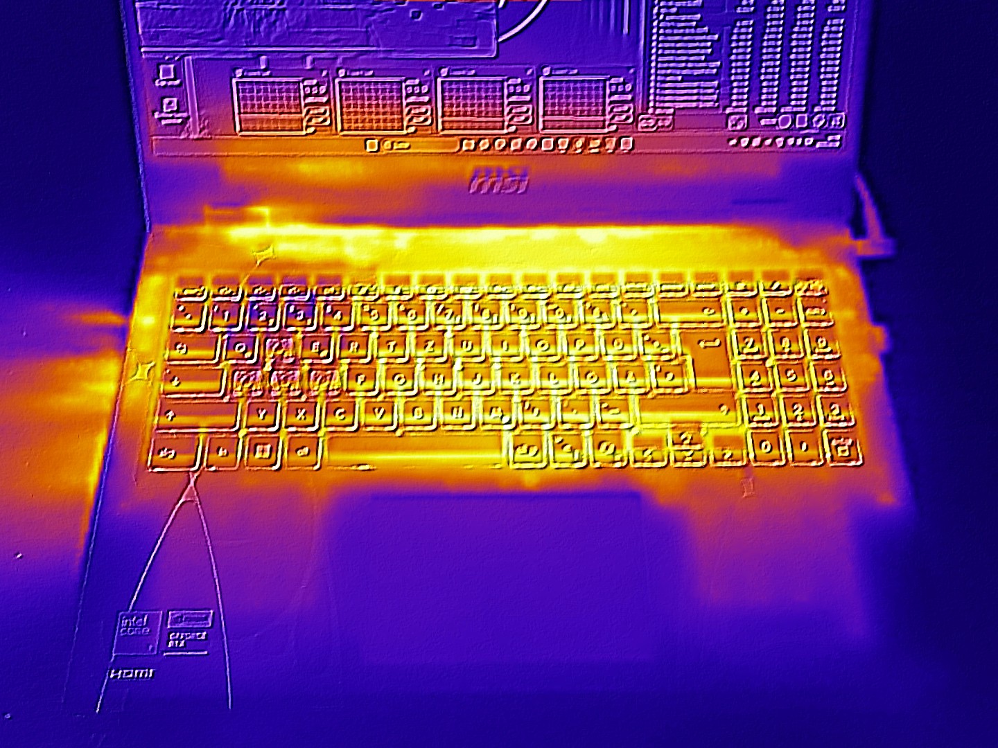 De temperaturen zijn ook goed. De boven- en onderkant worden respectievelijk maximaal 46 en 45 °C (~114,8 en 113 °F) warm onder hoge belasting. Bepaalde zwakke punten zijn duidelijk in de inactieve modus, waar de Cyborg 15 de neiging heeft om warmer te zijn dan zijn concurrenten.