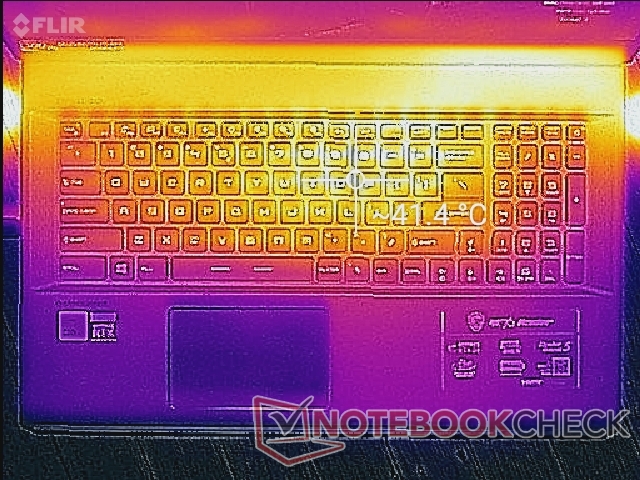 (±) De maximumtemperatuur aan de bovenzijde bedraagt 41 °C / 106 F, vergeleken met het gemiddelde van 40.4 °C / 105 F, variërend van 21.2 tot 68.8 °C voor de klasse Gaming.