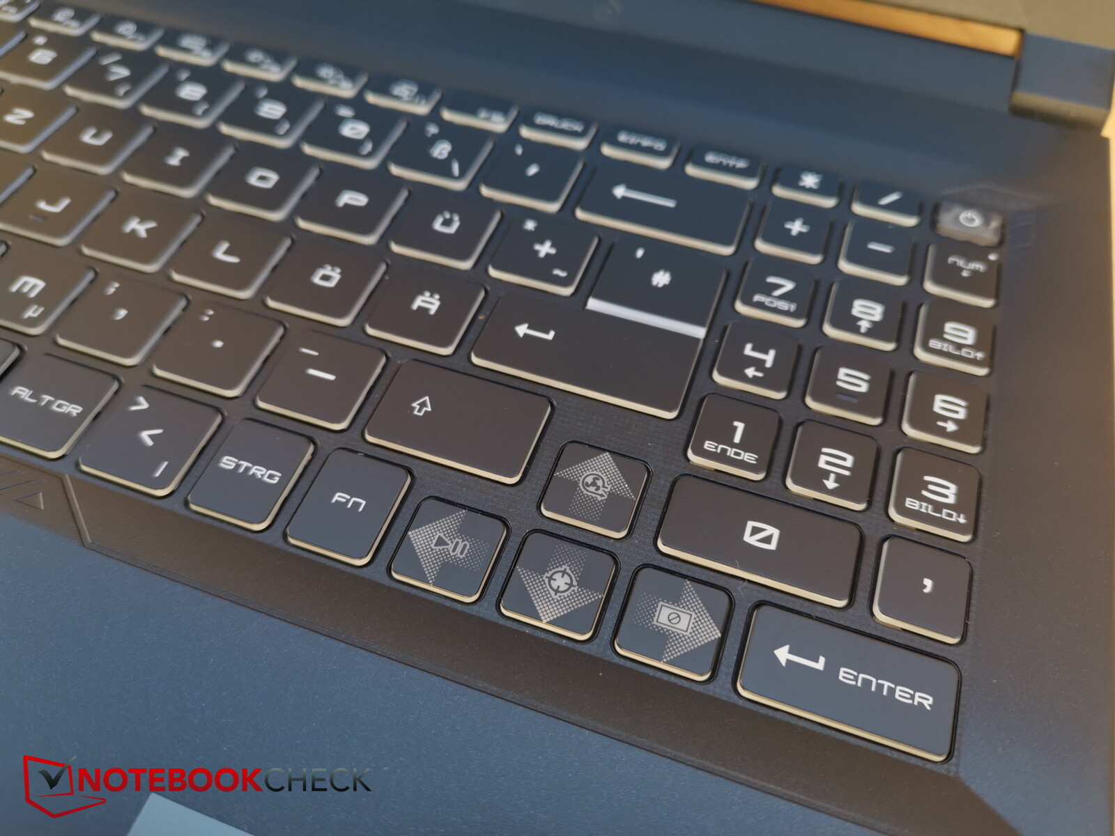 De lay-out lijkt sterk op die van alle Katana-modellen: hij ziet er heel netjes uit, maar het numpad aan de rechterkant lijkt er slecht ingeperst, maar er is er tenminste één.