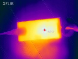 De hete plekken zitten net onder de 50 °C in het midden naar de achterkant toe. De palmsteunen blijven altijd koel, maar de WASD-toetsen kunnen bij zware belasting wat onaangenaam warm worden.
