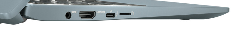 De B11SB biedt twee USB-A (USB 3.2 Gen 2) en een enkele USB-C (Thunderbolt 4) poort. Deze laatste ondersteunt Power Delivery en DisplayPort via USB-C en maakt ook het gebruik van een docking station of externe GPU mogelijk. De 14-inch laptop bevat ook in totaal twee videopoorten (1x DP, 1x HDMI). De ingebouwde microSD-opslagkaartlezer is een langzamere vertegenwoordiger in zijn soort (met behulp van onze AV PRO microSD 128 GB V60 referentie-opslagkaart).