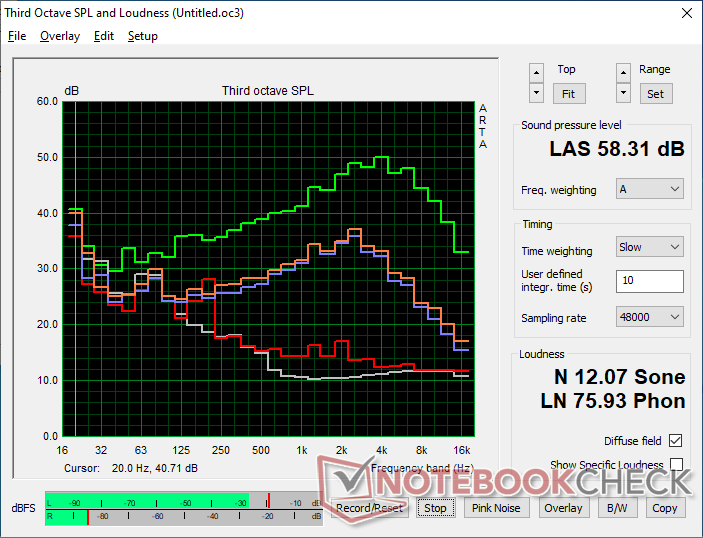 (+) | het totale geluid is lineair (14.8% verschil met de mediaan)