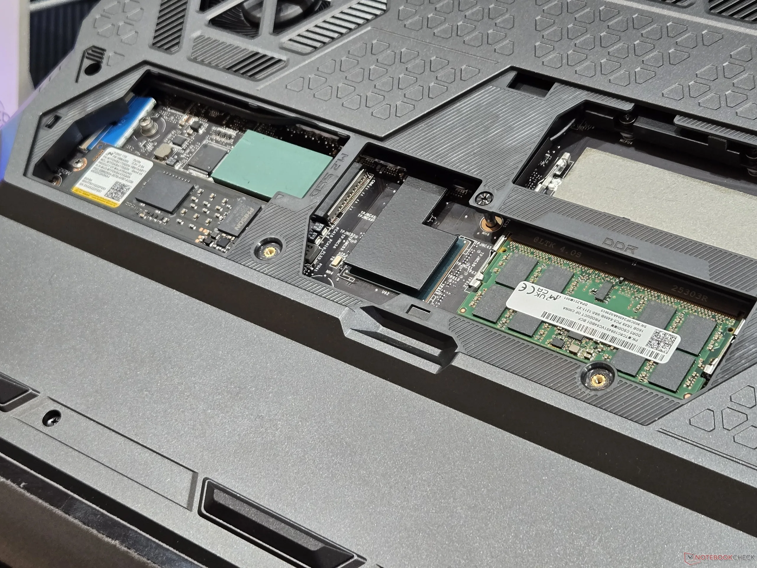 De nieuwe Raider 16 HX Max is een paar weken geleden onthuld op CES 2026de nieuwe Raider 16 HX Max zal draaien op Intel Arrow Lake-HX CPU's en Nvidia Blackwell hardware die bekend zijn van het model uit 2025. Het chassis is dit jaar echter opnieuw ontworpen met een nieuw luik aan de onderkant voor gemakkelijkere toegang tot upgradebare componenten, zoals de afbeeldingen hieronder laten zien. In dit geval kunnen eigenaars tot twee DDR5 SODIMM-modules en twee M.2 PCIe5 SSD's installeren zonder het hele onderpaneel te hoeven openen.
