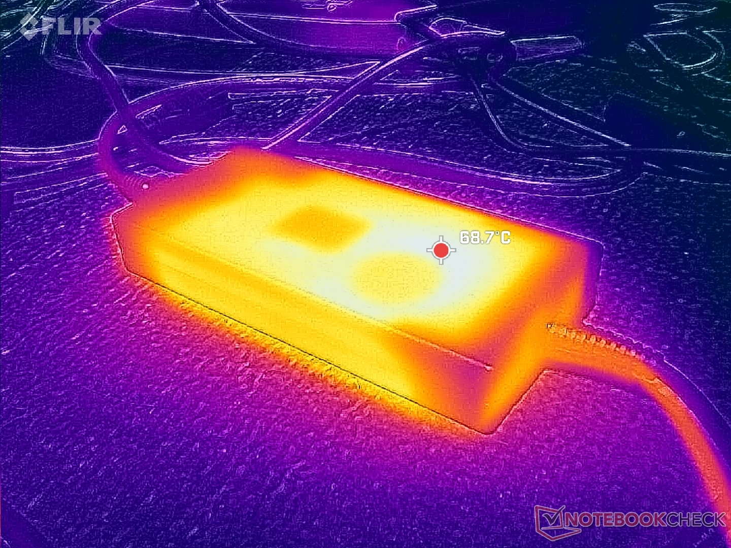 Bovendien kan de AC-adapter met bijna 70 C (!) extreem warm worden bij veeleisende belastingen zoals games. Ter vergelijking: de AC-adapter van de eerder genoemde Blade 18 onder belasting onder de 50 C blijven.