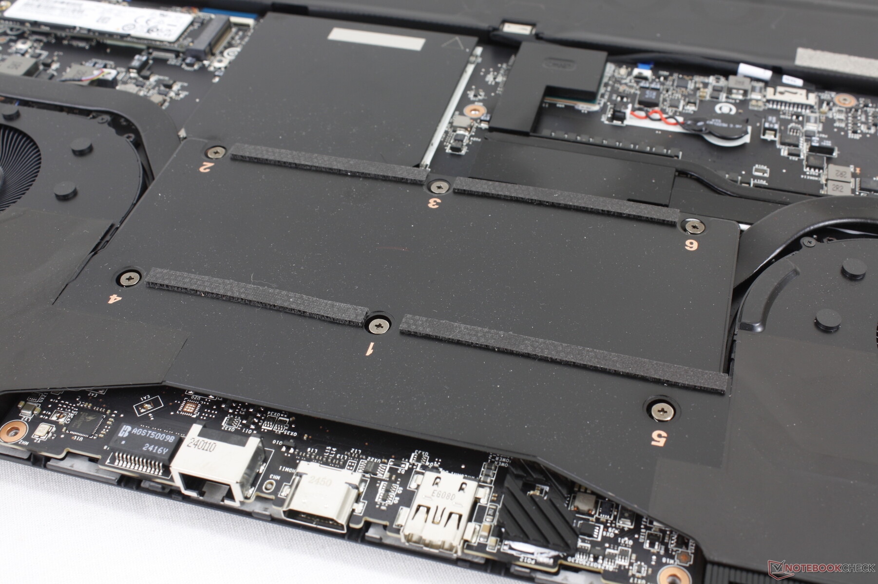 Andere opvallende omissies zijn het ontbreken van OLED, G-Sync, Thunderbolt 5 en ondersteuning voor secundaire SSD's, ondanks het grote schermformaat. In feite is dit een van de enige 18-inch gaming laptops zonder M.2 opslaguitbreidingsopties. Hopelijk kunnen veel van deze tegenslagen voor de volgende iteratie van het systeem worden verholpen zonder dat het systeem dikker of zwaarder hoeft te worden.
