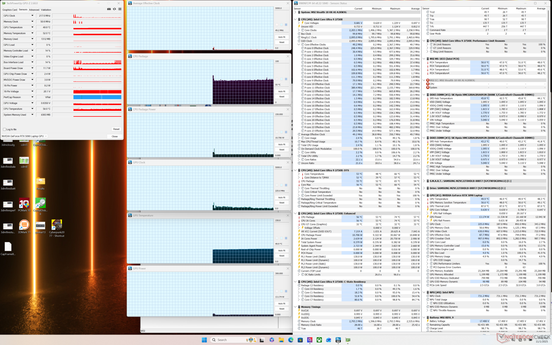| Gemiddelde CPU-klok (GHz) | GPU-klok (MHz) | Gemiddelde CPU-temperatuur (°C) | Gemiddelde GPU-temperatuur (°C) | |