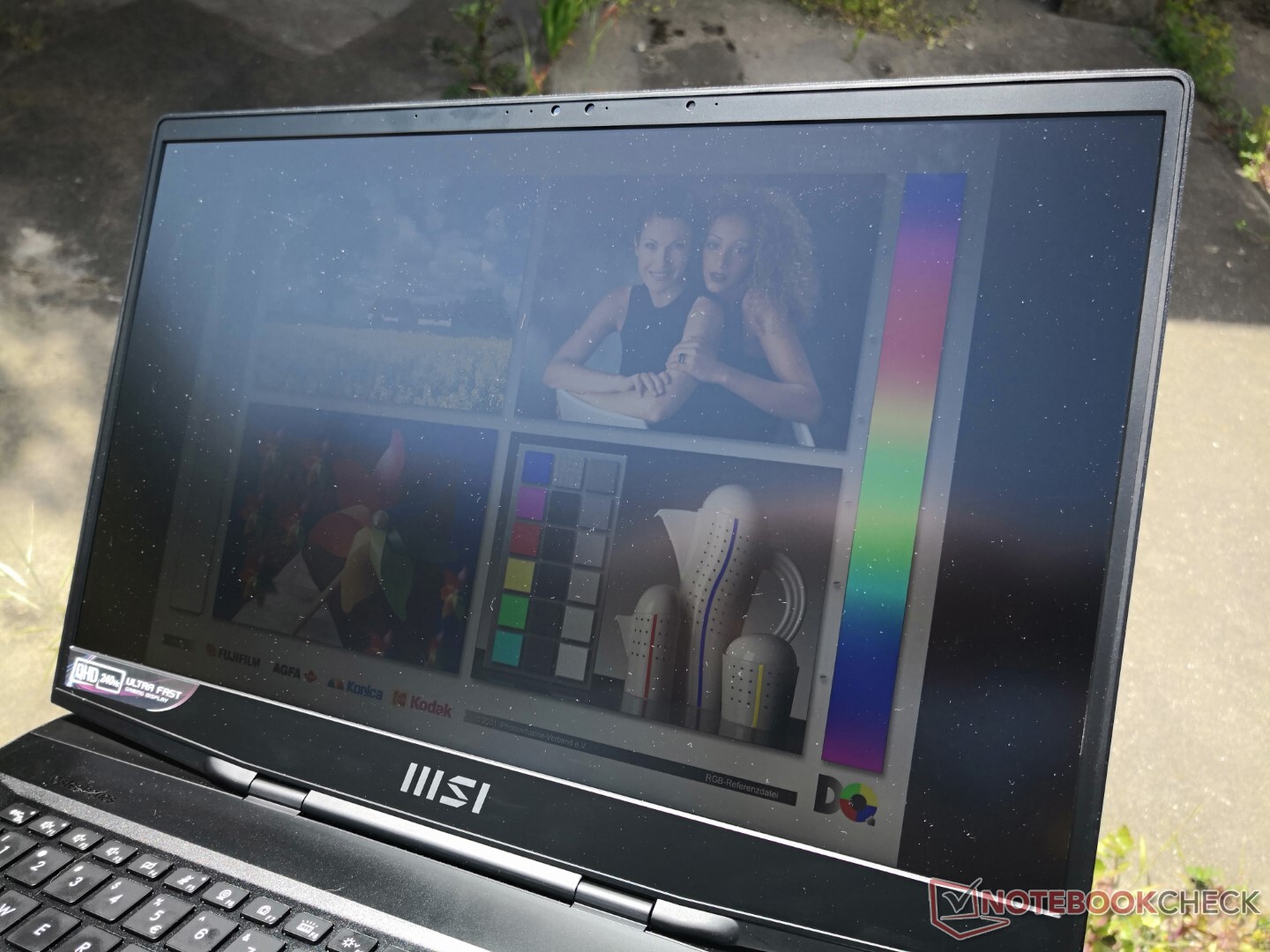 De GS77 maakt gebruik van exact hetzelfde hoogwaardige BOE NE173QHM-NZ1 1440p IPS-paneel dat Razer gebruikt voor haar Blade 17. Dus, kern attributen zoals de native 240 Hz refresh rate, snelle responstijden, fatsoenlijke ~1000:1 contrast ratio, en volledige DCI-P3 dekking zijn identiek tussen de twee concurrerende 17,3-inch laptops.