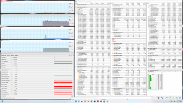 Bij het uitvoeren van Prime95 om de CPU te belasten, werden de kloksnelheden en kerntemperatuur opgevoerd tot 4 GHz en 95 C gedurende de eerste paar seconden, voordat ze stabiliseerden in het 2,7 tot 3 GHz bereik om te voorkomen dat de processor nog warmer zou worden. Ter vergelijking, de Core i7-12800H in de Blade 17 zou langzamer en koeler draaien op 2,4 tot 2,6 GHz en 71 C, respectievelijk, wanneer onderworpen aan vergelijkbare Prime95 omstandigheden. MSI pusht zijn CPU dus veel warmer om de processorprestaties te maximaliseren. CPU pakket vermogen op de GS77 zou oplopen tot 122,7 W tijdens het begin van de test voordat het stabiliseert op ongeveer 71 W, wat weer hoger is dan de 61 W die we registreerden op de Razer.