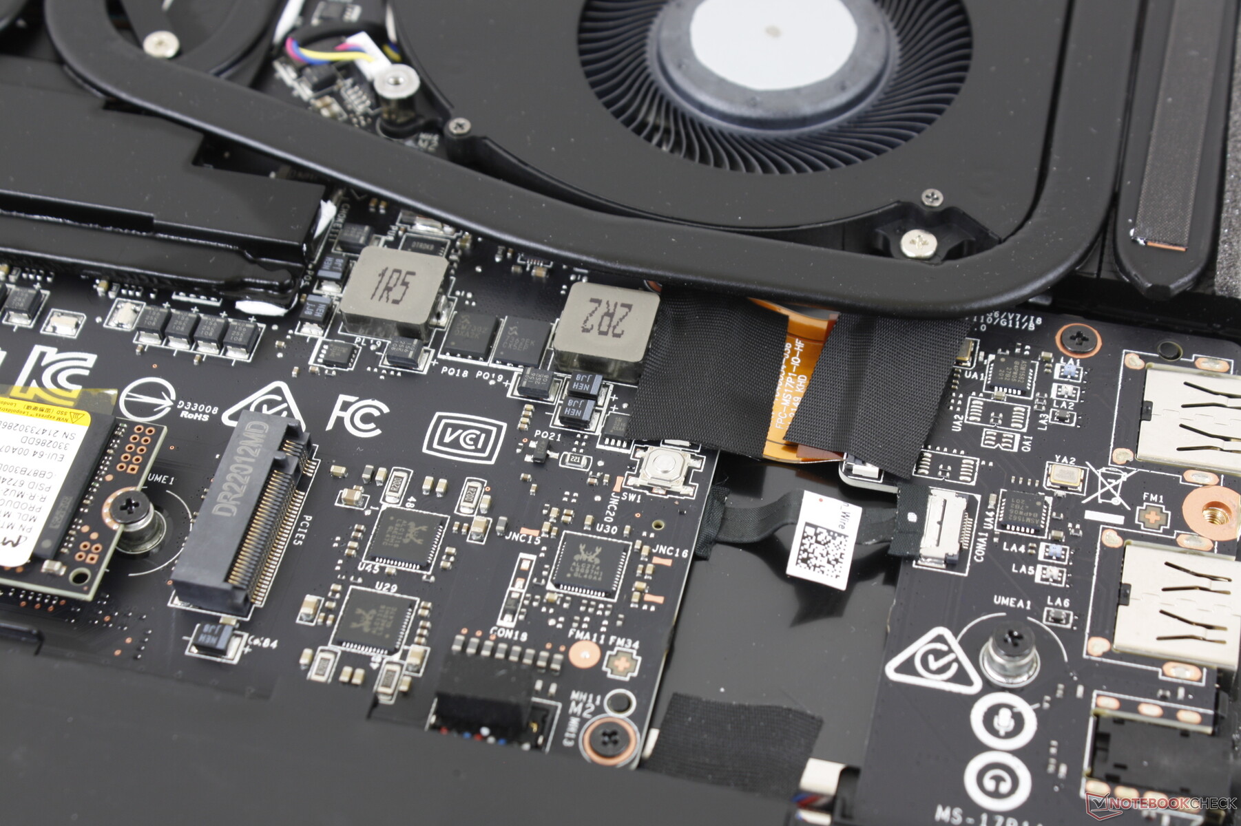 Eenmaal binnen hebben gebruikers toegang tot 2x SODIMM slots, 2x PCIe4 x4 2280 SSD slots, en de verwijderbare WLAN module. De twee SODIMM-sleuven worden beschermd door hun eigen aluminium cover.